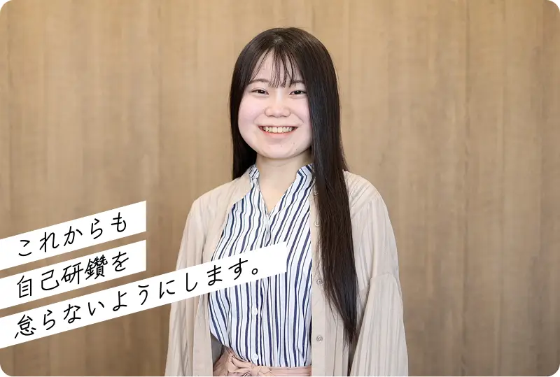 努力をしたからこそ、今があります。新しいことに挑戦したくAIを選びました。2年間という短い期間ですので、学べることも限られていますが資格取得、技術習得はすべてクリアしました。その努力を認められ希望していた企業に就職できました。これからも自己研鑽を怠らないようにします。