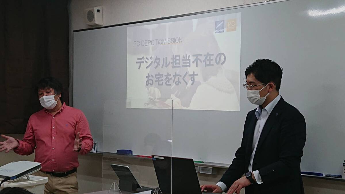 今回は小山市にあるピーシーデポスマートライフ小山店より店長の宮野様と齋藤様に来校していただき、業界の話を中心に講話していただきました。