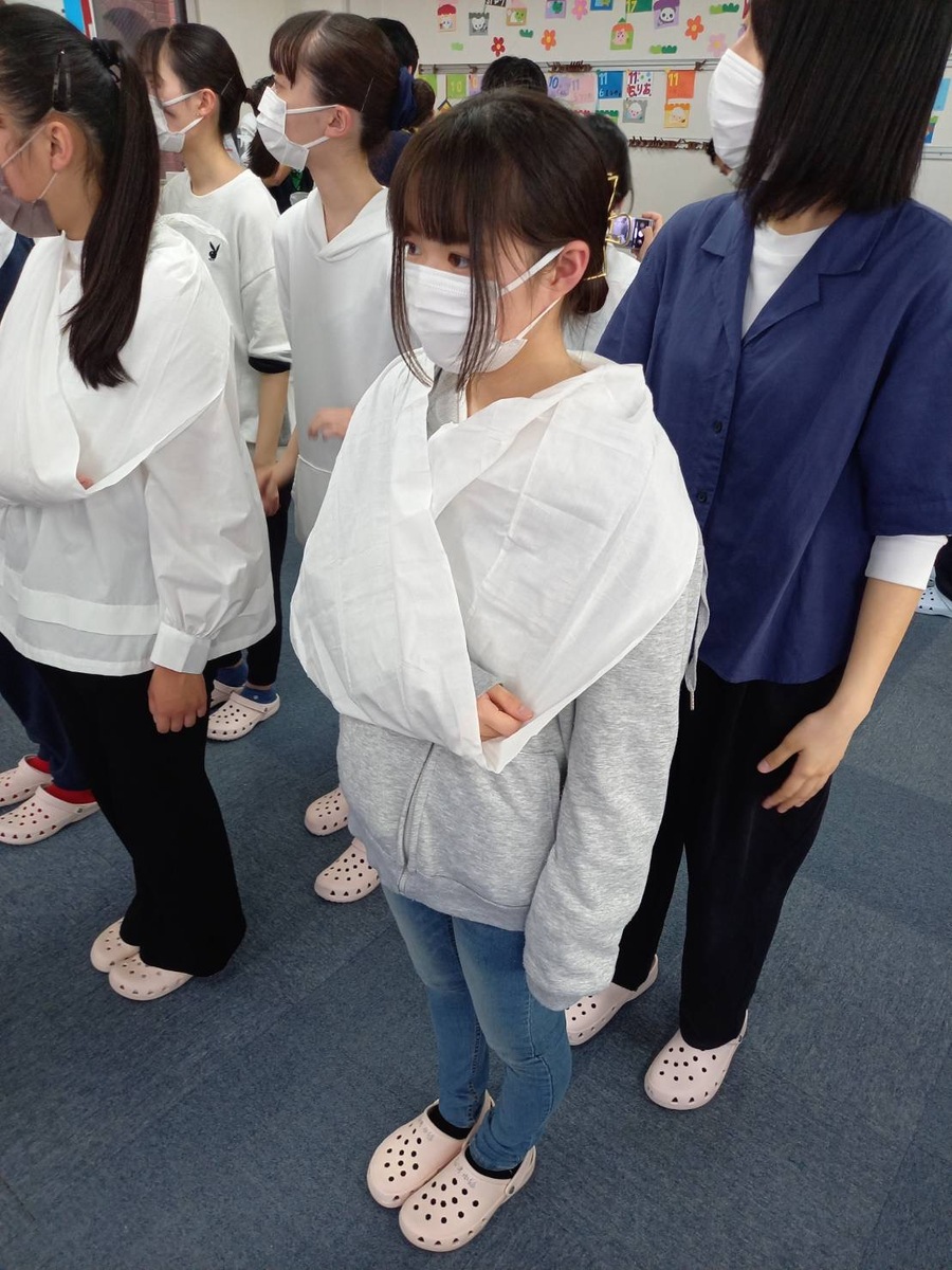 救命方法や三角巾を使った腕の固定方法など、いざという時の対処法を一生懸命学んでいました。