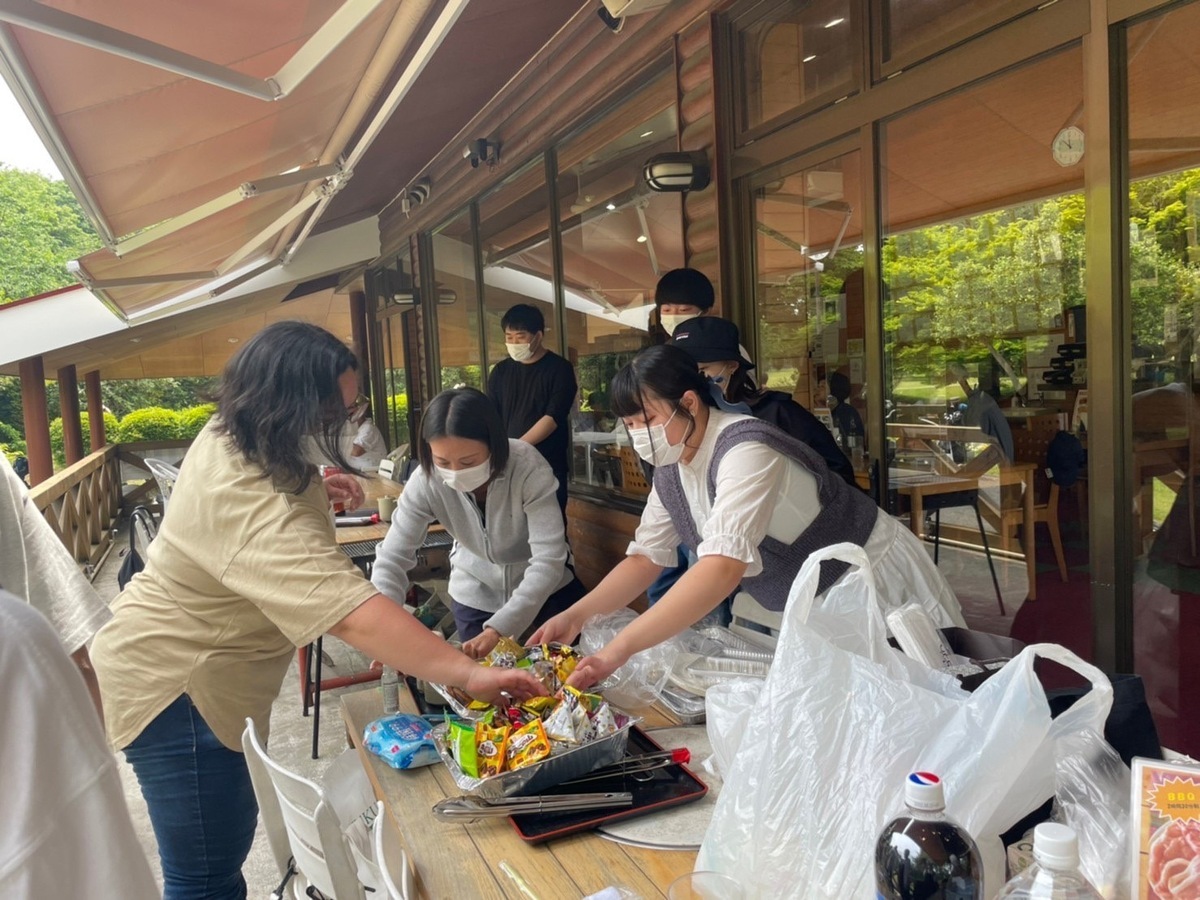 毎年スポーツフェスティバルに向けて、学科の団結を強める為にバーベキューを行なっていますが、今年は女子が多かったので、お肉がたくさん余ってしまいました。旅程の作成、団体乗車券の手配、飲み物と追加飲食の手配、添乗業務と、2年生が入学したばかりの1年生の為に、全て段取りを組んで行いました。天気にも恵まれ、楽しい時間をみんなで過ごすことができました。