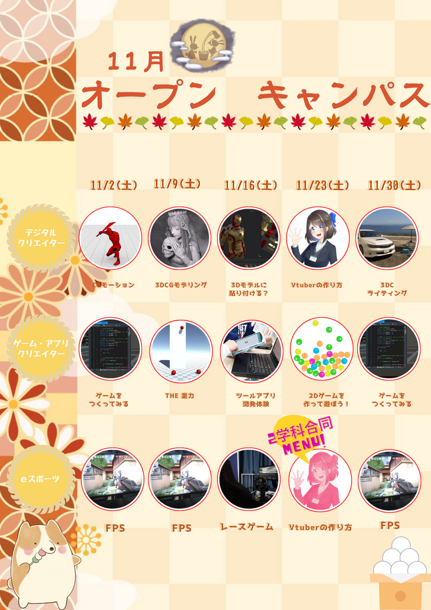 11月オープンキャンパス体験授業のメニューのご紹介です☆☆