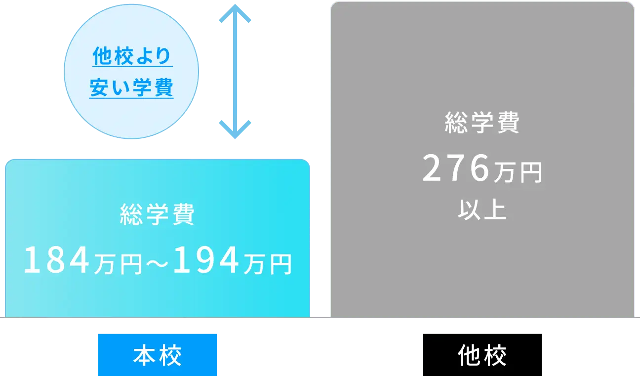 栃木県宇都宮市にある情報処理・ITビジネス・ゲーム・公務員・デジタルクリエイター・eスポーツ・AIエンジニア・ホテル観光サービスを目指せる国際情報ビジネス専門学校は、学費の合計が184万円〜194万円と、他校より圧倒的に学費が安いことが魅力です。