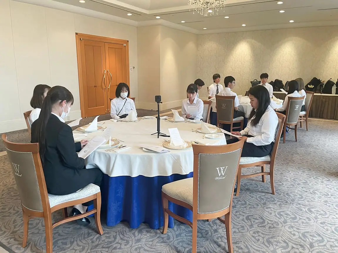 - 【実技演習】実際の接客やサービスを体験するための実技演習が豊富に用意されています。テーブルセッティングや飲料サービス、宿泊業務の実習等が行われます。